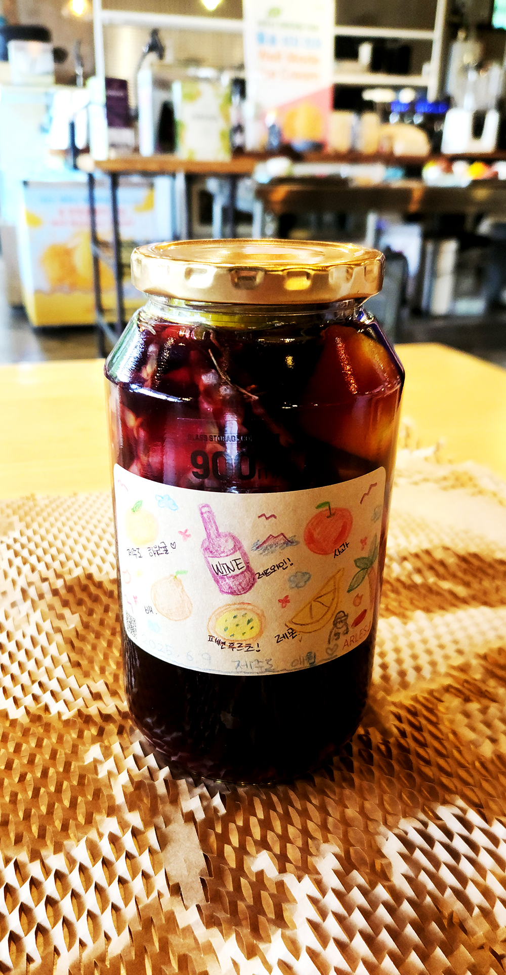 You can feel the freshness of Jeju local fruits with the experience of trimming the fruits and even completing the bottle.